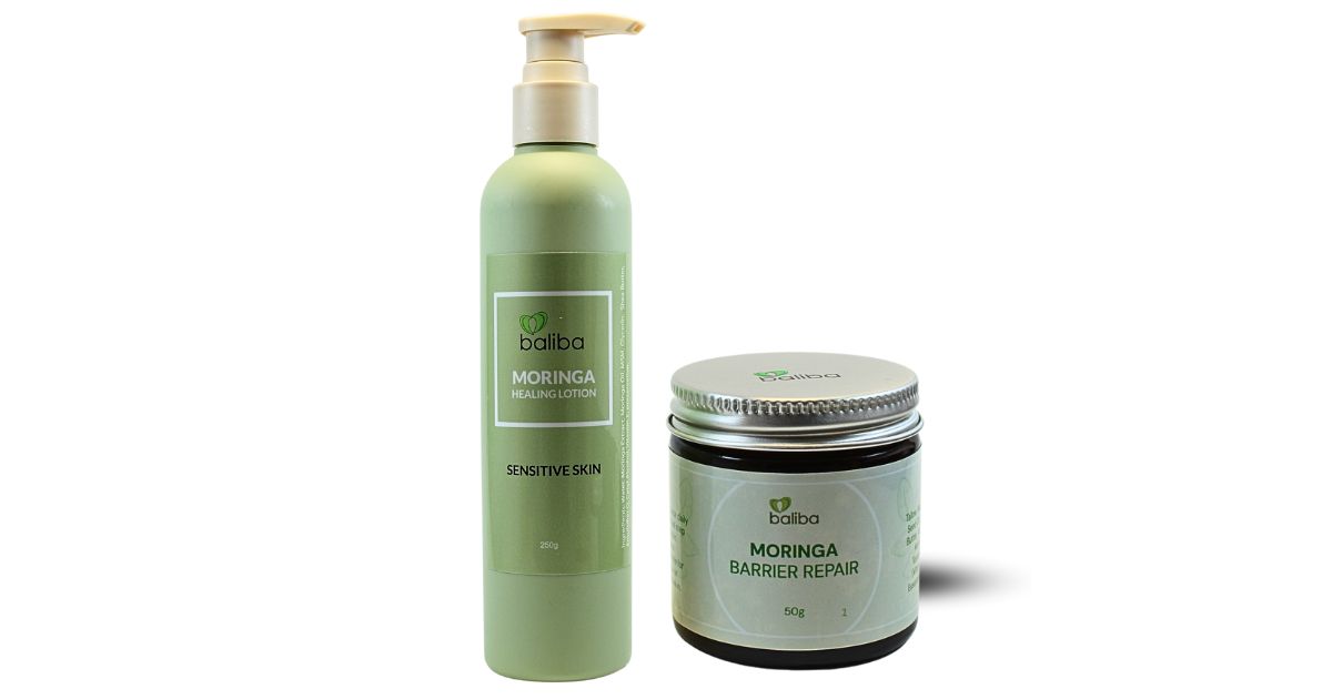 Set includes Moringa Healing Lotion 250ml & Moringa Barrier Repair 150g.