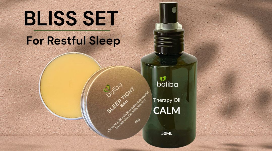 Bliss Set includes Baliba Sleep Tight Balm and Baliba Therapy Oil Calm Mist.