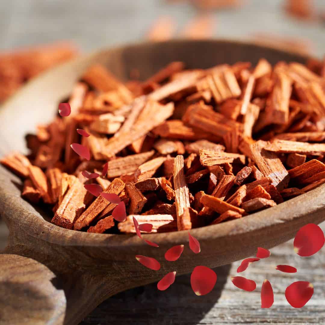 Aromatic, oriental sandalwood in combination with sweet yellow rose petals is a classic fragrance. This aroma oil is gentle – representing all notes well.